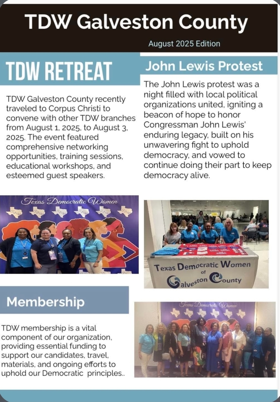 The Galveston County Chapter (“TDW-GC”) of the Texas Democratic Women welcomes you!